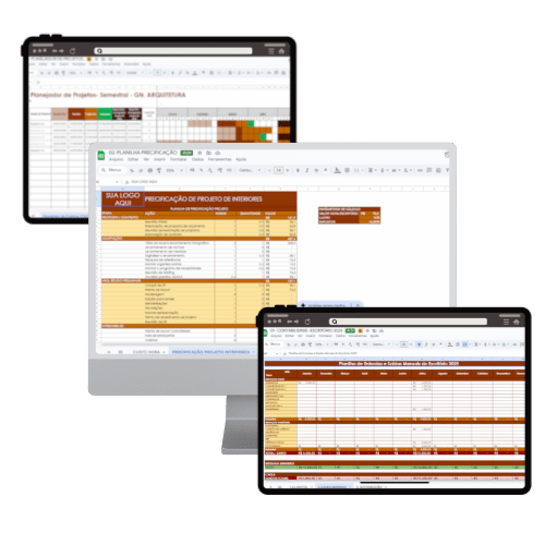 Controle prazos, precifique projetos e tenha clareza financeira no seu escritório. Você terá acesso a Planilha de Precificação de Projeto, Planilha de Controle Financeiro e Planilha de Planejamento Interno. Tudo para facilitar a gestão do seu escritório.
