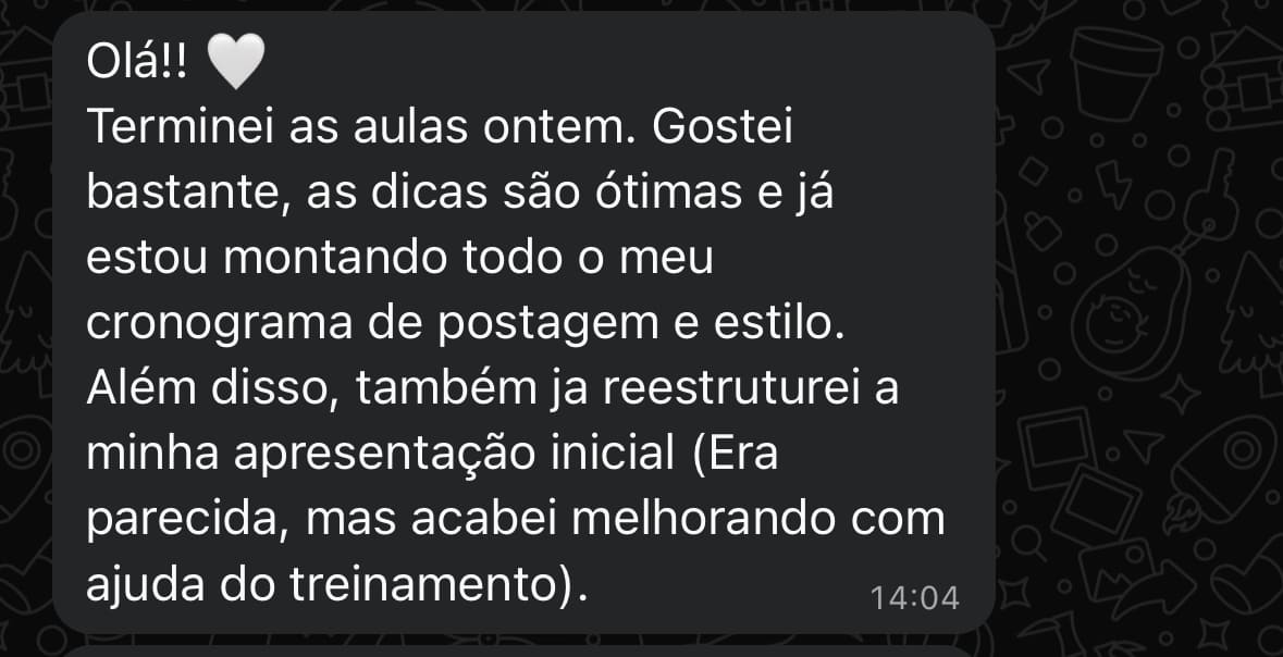 Você vai sair com um perfil alinhado, ideias de conteúdo e claro sobre como se posicionar de forma sustentável.