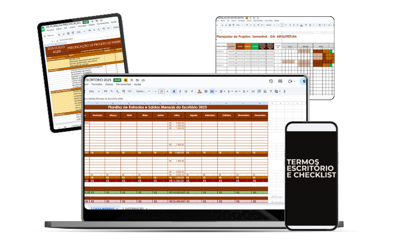 E é isso que você vai encontrar no Organiza.Arq — o pack completo de planilhas e documentos que vai transformar a gestão do seu escritório (e sua paz mental também).